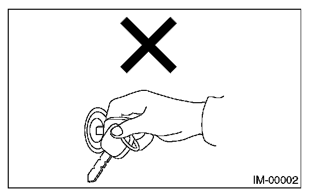 - When the ignition switch is being turned ON or OFF while diagnostic items are being checked, do not allow keys with different ID codes close to the ignition switch. If the ignition key is in a key holder, remove it from the holder before carrying out diagnoses.