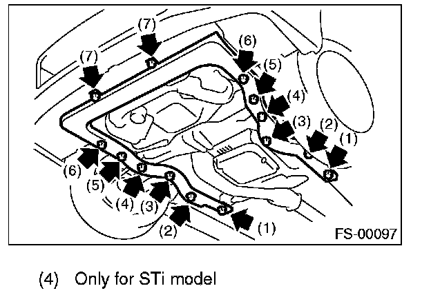 NOTE: Loosen bolt 1 and leave a few threads caught, then remove the bolts in the order of (2), (3), (4), (5), (6), and (7).