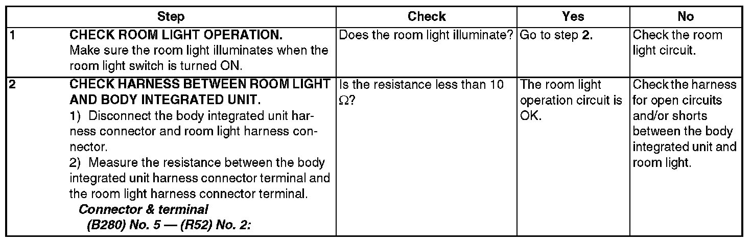 Check Room Light Operation
