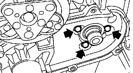 1) Install the water pump onto the left-hand cylinder block.