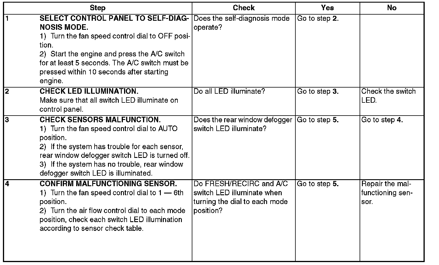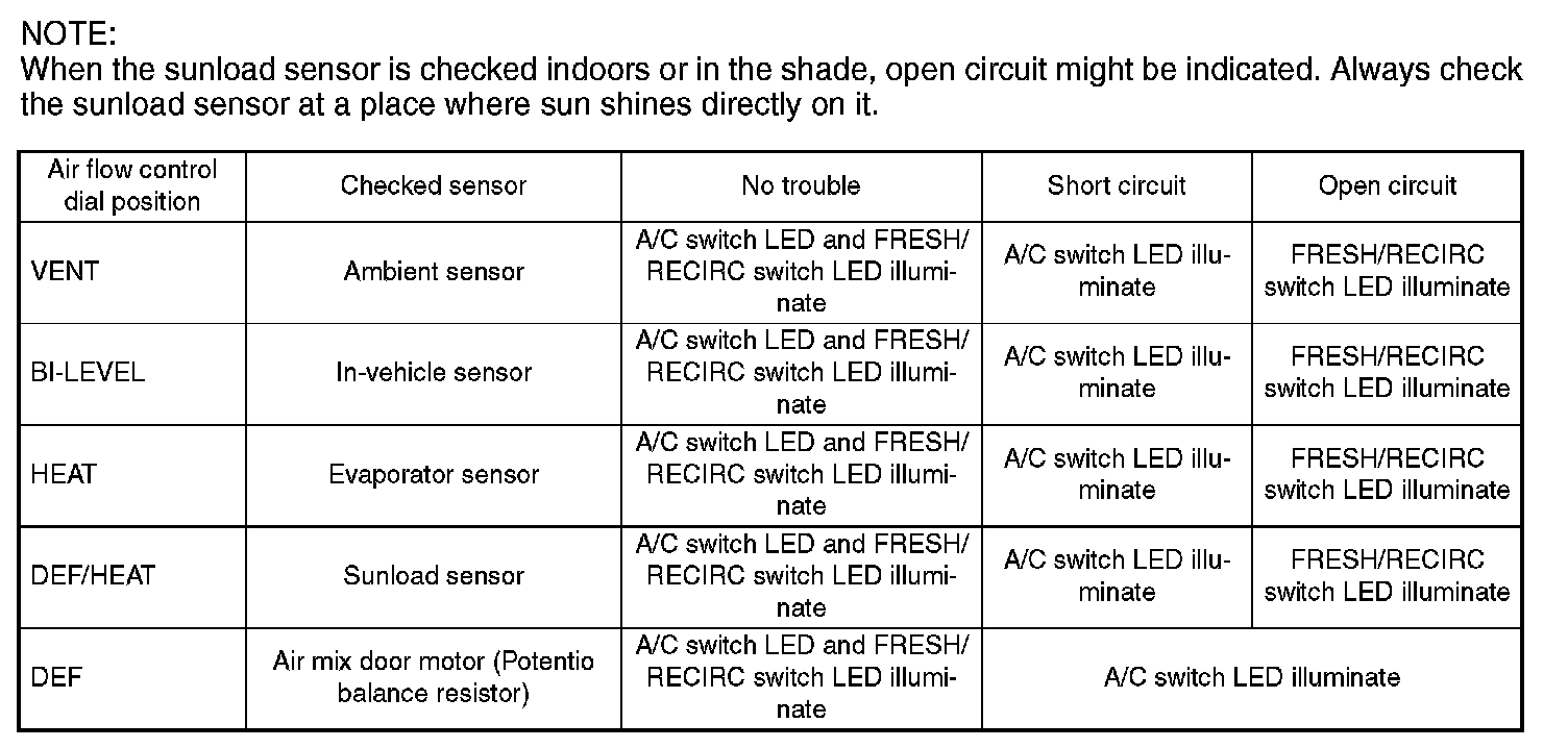 Sensor Check Table:
