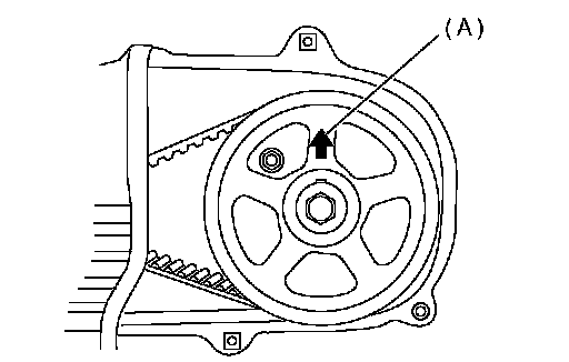NOTE: When the arrow mark (A) on cam sprocket (LH) comes exactly to the top, #1 cylinder piston is brought to the top dead center of compression stroke.