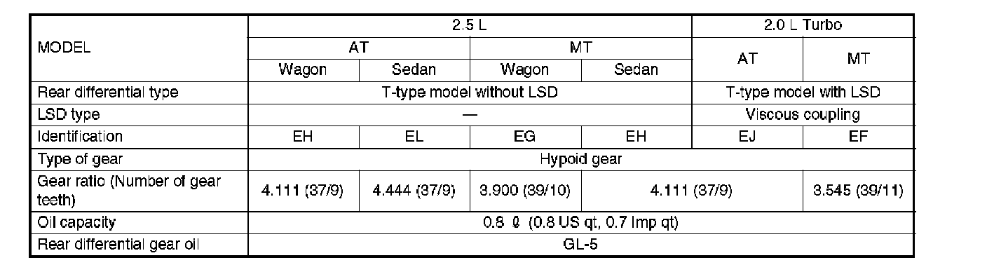SPECIFICATIONSWhen replacing a rear differential assembly, select the correct one according to the following table.