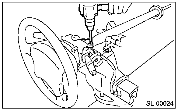 3. Secure the steering column in a vise. Remove the bolt with a drill.