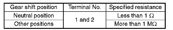 If NG, replace the neutral position switch.