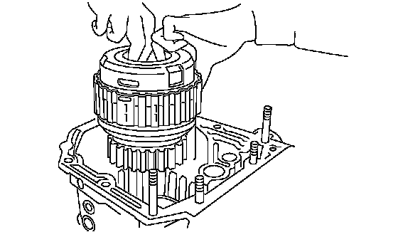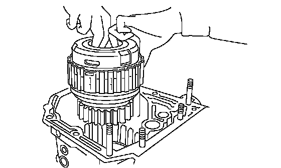 22. Install planetary gear and low clutch assembly to transmission case. Install carefully while rotating the low clutch and planetary gear assembly slowly paying special attention not to damage the seal ring.