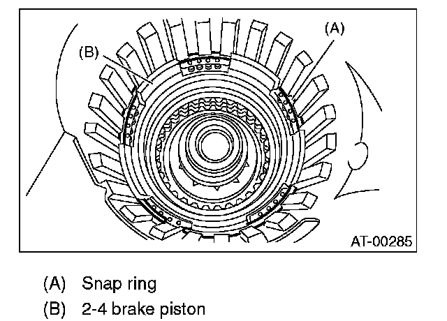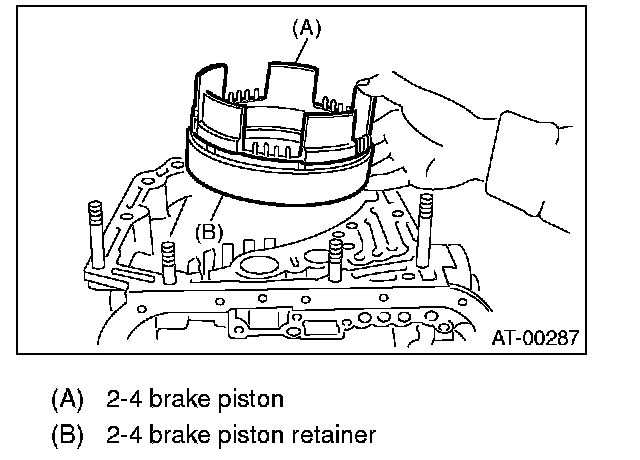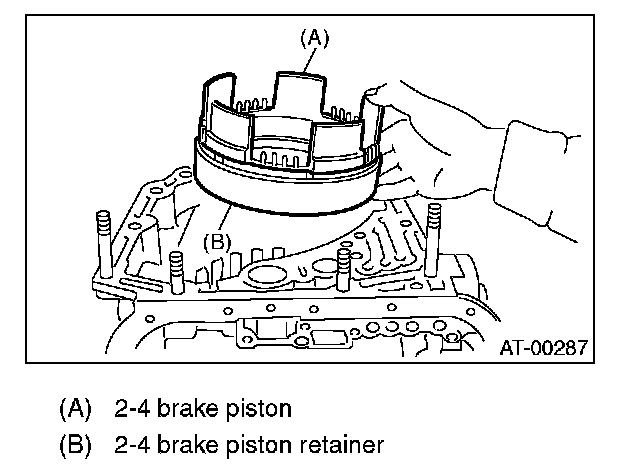 21. Remove the 2-4 brake piston and piston retainer without damaging.