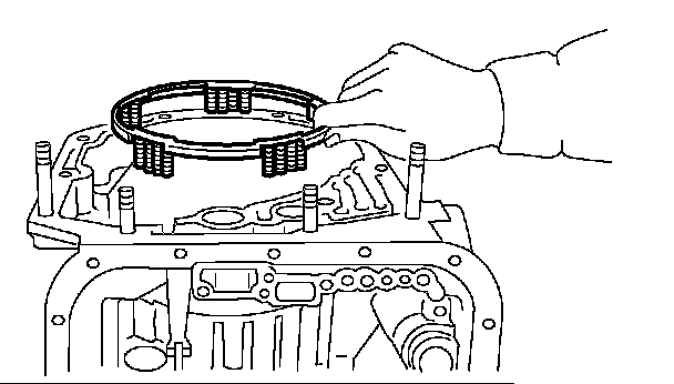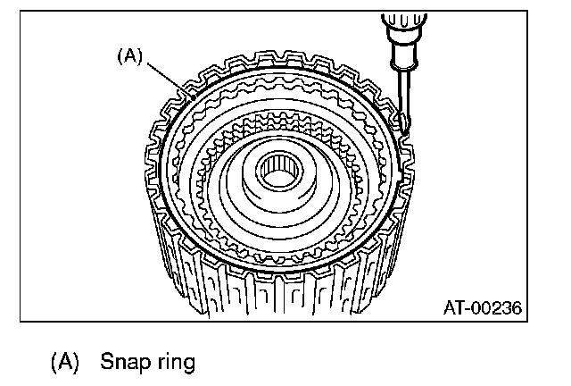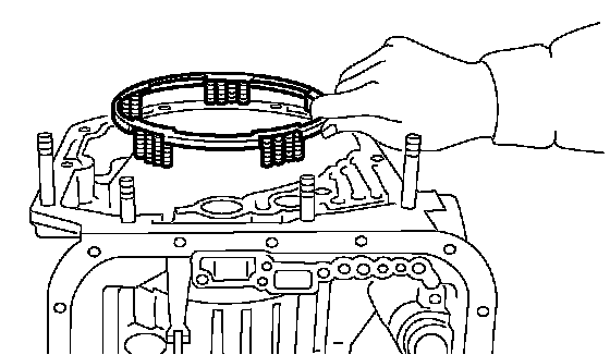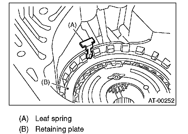 14. Installation of the low & reverse brake: Install the dish plate, driven plate and retaining plate, and then secure them with snap ring.