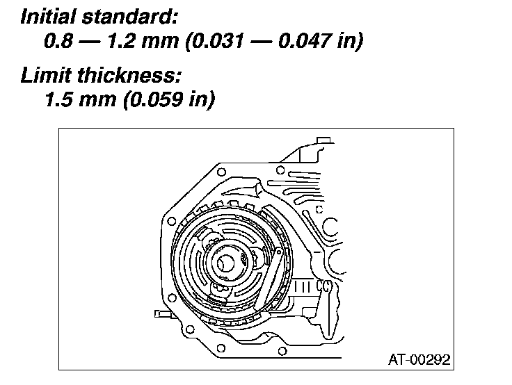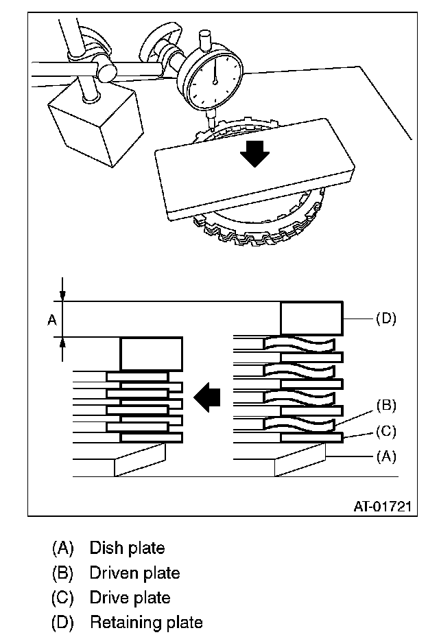 Select the retaining plate within the specification by calculating with A and B dimensions which have been recorded before. If the calculated value exceeds the usage limit, replace the drive plate with a new one and adjust it within the specification.