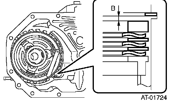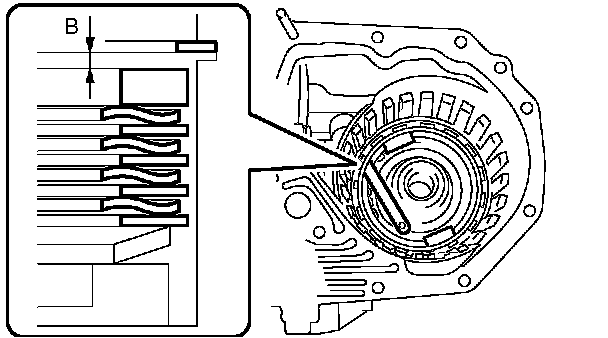 10. Measure and record the clearance B between the retaining plate and snap ring.