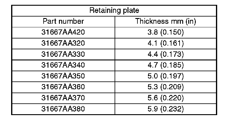 NOTE: Select a retaining plate with a suitable value from the following table, so that the clearance becomes the standard value.