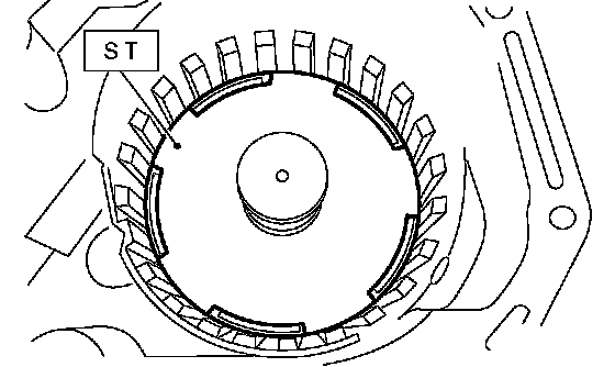 21. Position snap ring in transmission. Using ST, press the snap ring into place. ST 498677100 COMPRESSOR