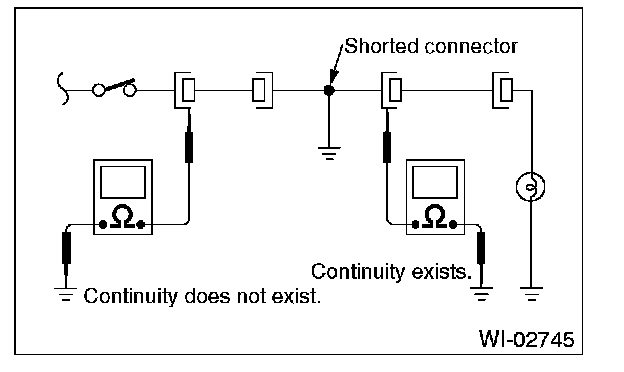 Disconnect all affected connectors, and check continuity between each connector and ground. When the ohmmeter indicates continuity between a particular connector and a ground, that connector is shorted.