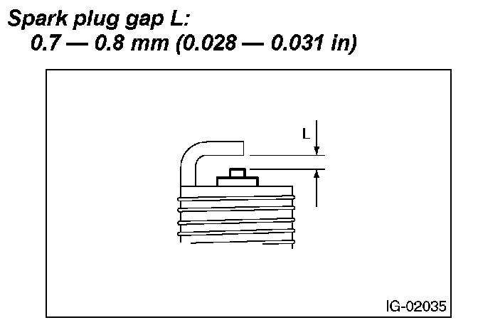 ADJUSTMENTClean the spark plugs using a wire brush. Clean and remove the carbon or oxide deposits. But do not wear away ceramic insulator at this time. If deposits are too stubborn, replace the spark plugs. After cleaning the spark plugs, measure the spark plug gap using a gap gauge.