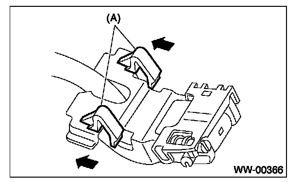 2. Hold the claw (A) of the washer nozzle towards the direction of the arrow, and remove the washer nozzle.