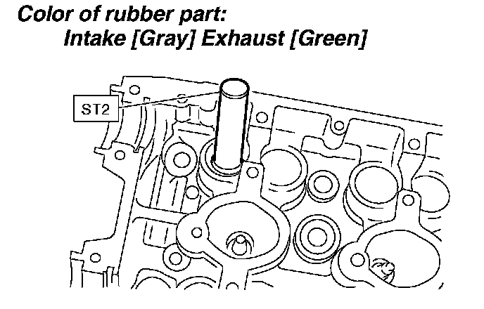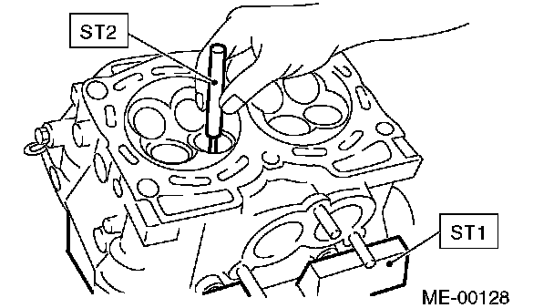 2 Insert the ST2 into valve guide and press it down to remove the valve guide.