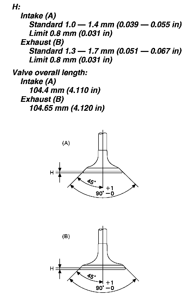 Valve guide inner diameter: 6.000 - 6.012 mm (0.2362 - 0.2367 inch)