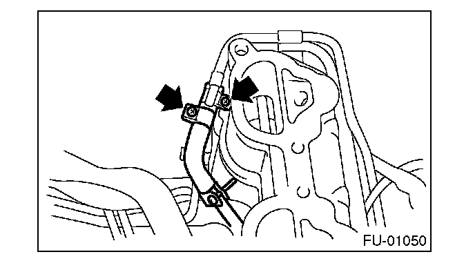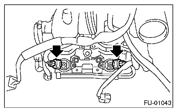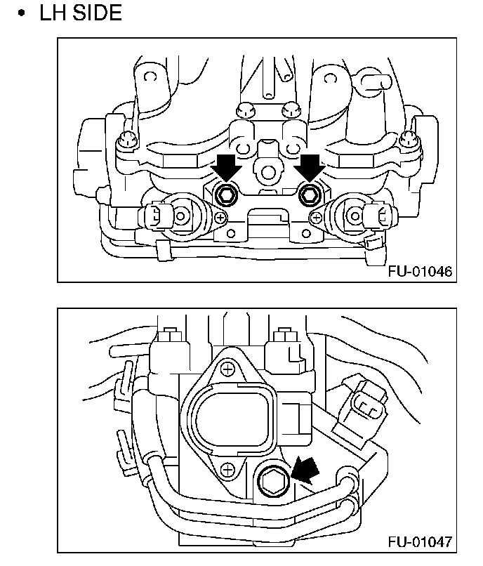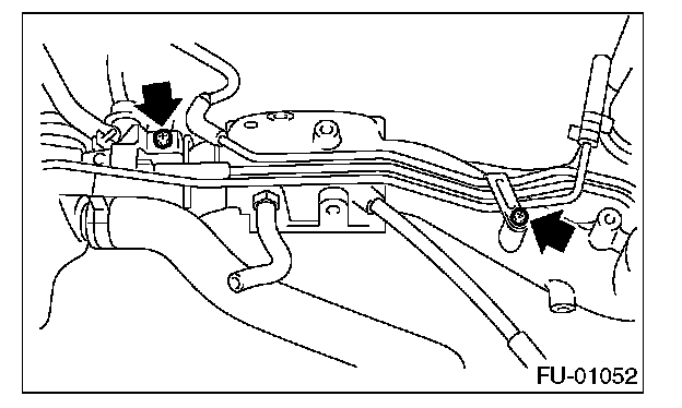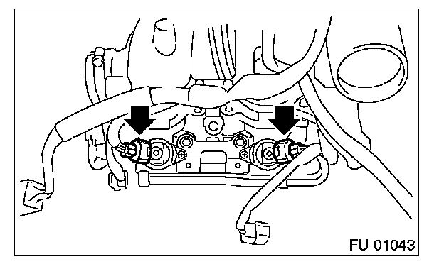 11. Tighten the two bolts which install the fuel pipes on the left side of intake manifold.