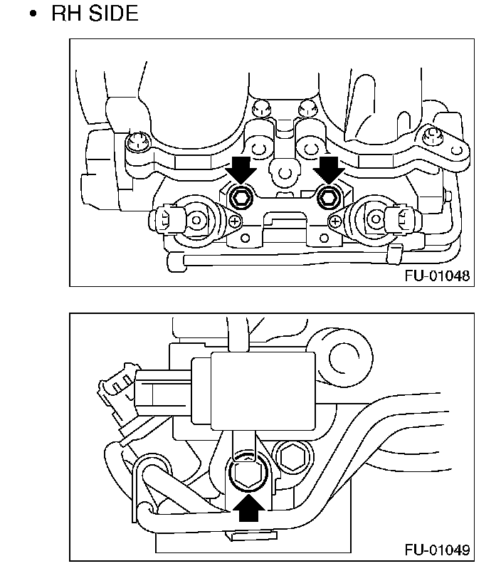 10. Remove the two bolts which hold the fuel pipes on the left side of intake manifold.
