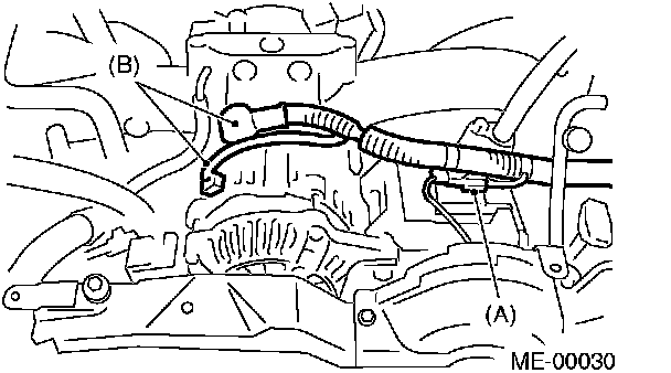 4. Tighten the bolts which hold the right upper side of transmission to engine.