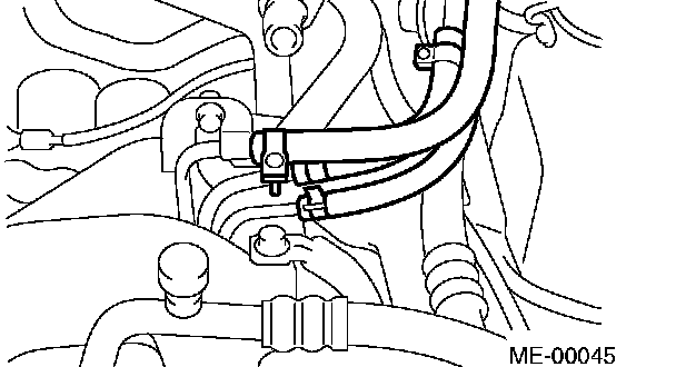 9. Disconnect the A/C pressure hoses from A/C compressor.