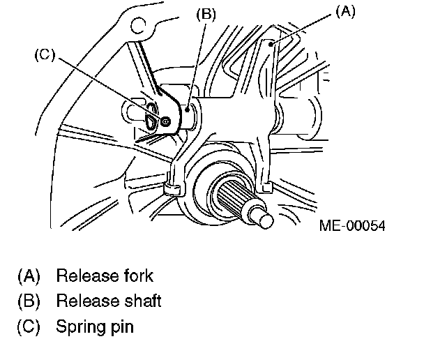 CAUTION: Make sure the cutout portion of release fork shaft contacts spring pin.