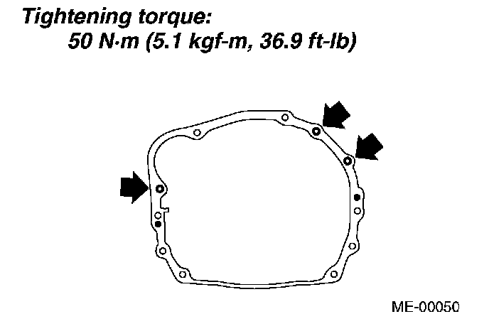 Tightening torque: 50 Nm (5.1 kgf-m, 36.9 ft. lbs.)