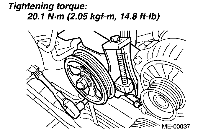 Tightening torque: 20.1 Nm (2.05 kgf-m, 14.8 ft. lbs.)