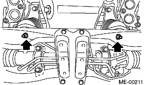 18. Remove the nuts which install the front cushion rubber onto front crossmember.