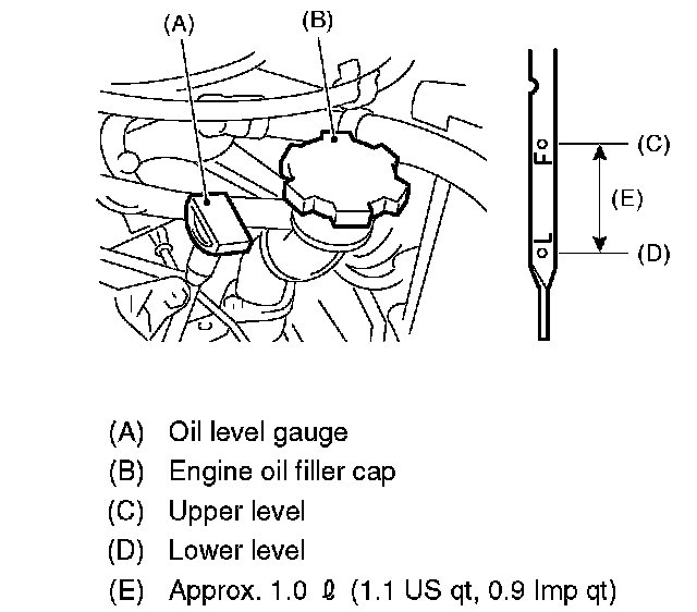 NOTE: To prevent overfilling the engine oil, do not add oil above "F" line when the engine is cold.