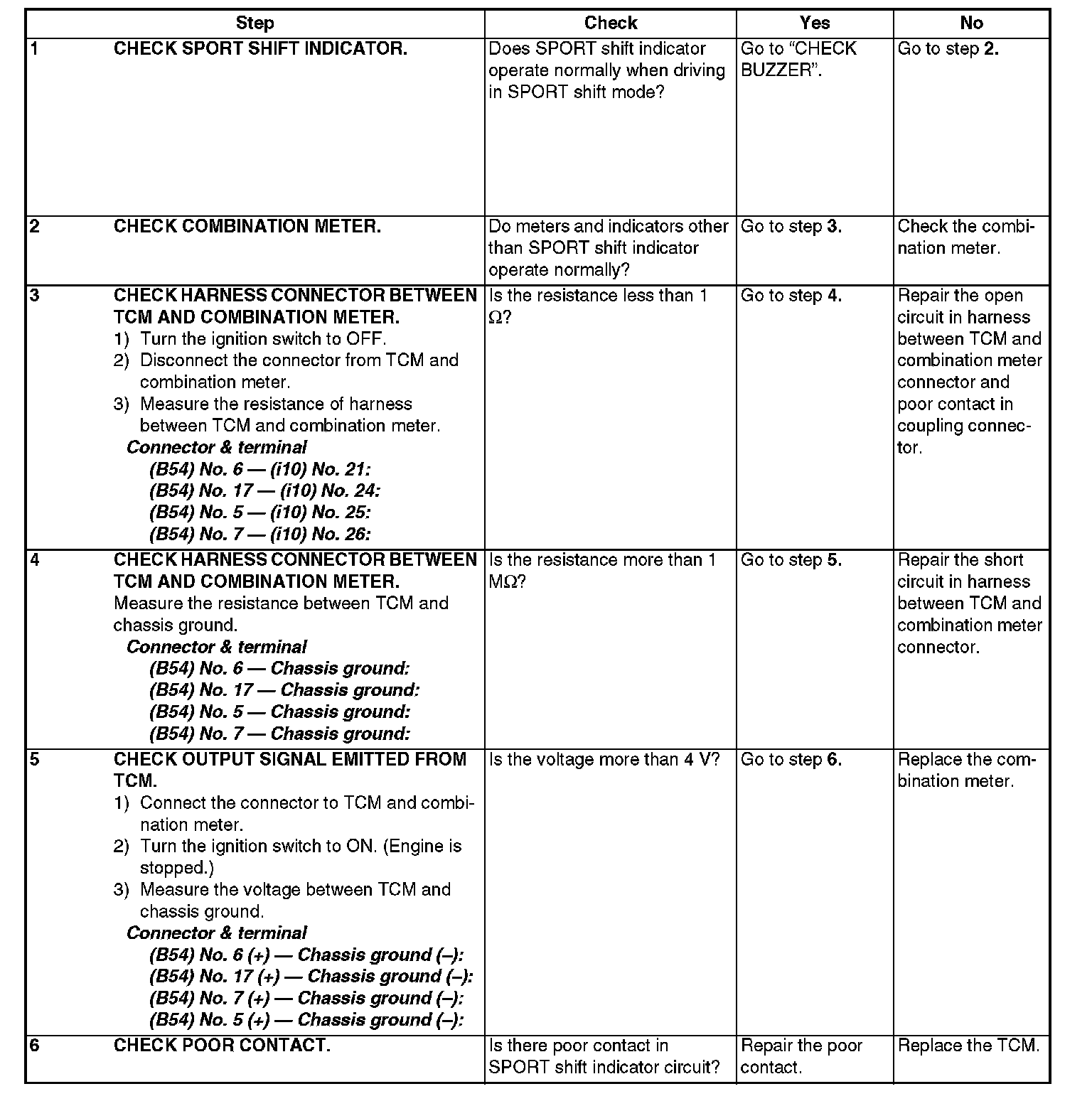 CHECK SPORT SHIFT INDICATORSteps 1 - 6: