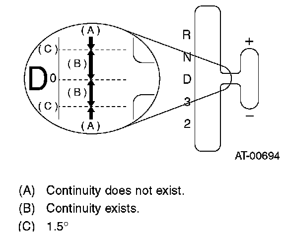 3. Check if there is continuity at equal points when the select lever is turned 1.5° in both directions from N range.