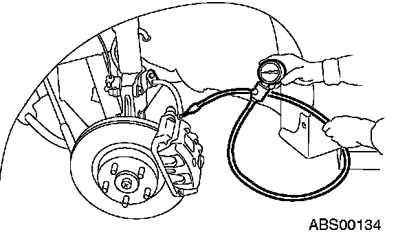 7. Read values indicated on the pressure gauge and check if the fluctuation of the values between decompression and compression meets the standard values. Also check if any irregular brake pedal tightness is felt.