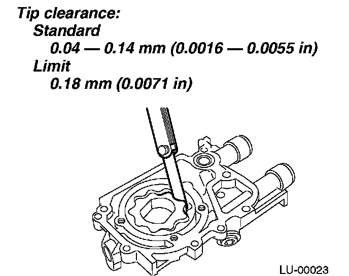 Measure the clearance between the outer rotor and the cylinder block rotor housing. If the clearance exceeds the limit, replace the oil pump case.