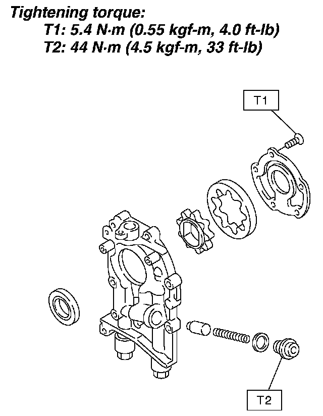 T2: 44 Nm (4.5 kgf-m, 33 ft. lbs.)