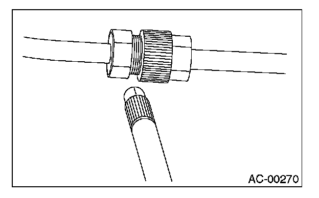 2. Starting from the connection between the high pressure tube and evaporator, check the system for leaks along the high-pressure side through the compressor. The following items must be checked thoroughly.