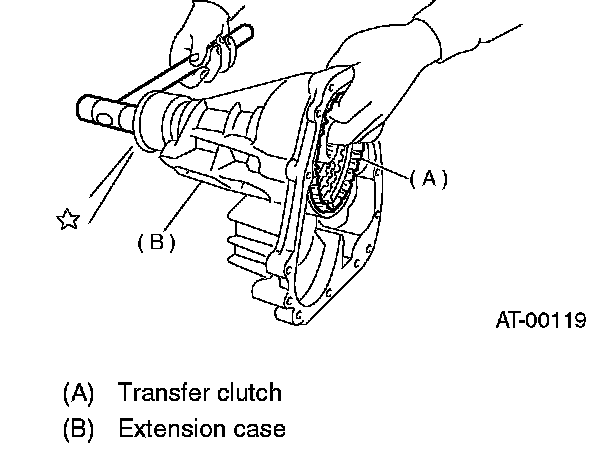 1. Take out the transfer clutch by lightly tapping the end of the rear drive shaft.