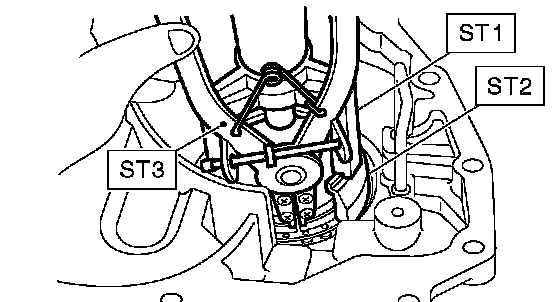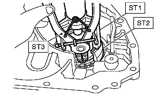 1. Remove snap ring using ST1, ST2, ST3 and a press.