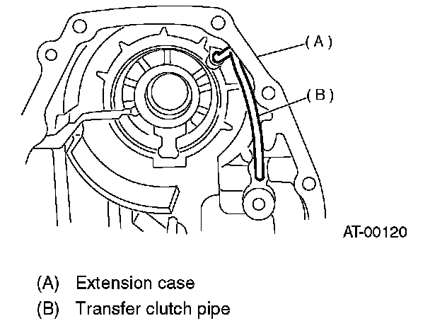 3. Install the transfer clutch pipe to extension case without bending pipe.