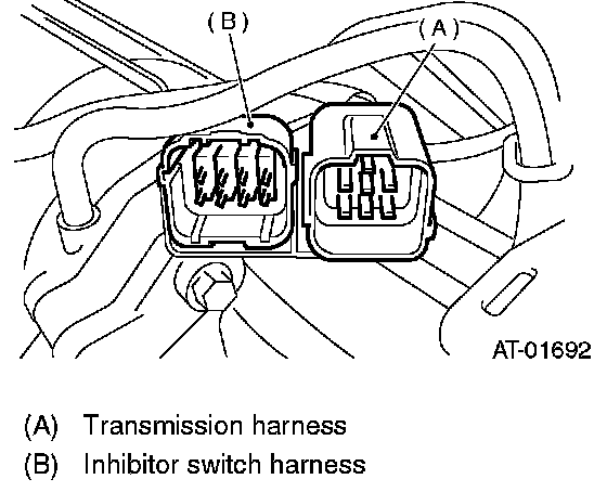 4. Lift-up the lever behind the transmission harness connector and disconnect it from stay.