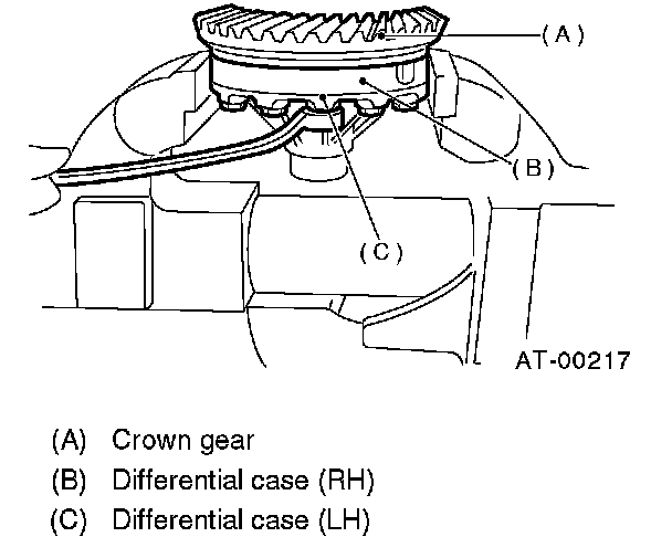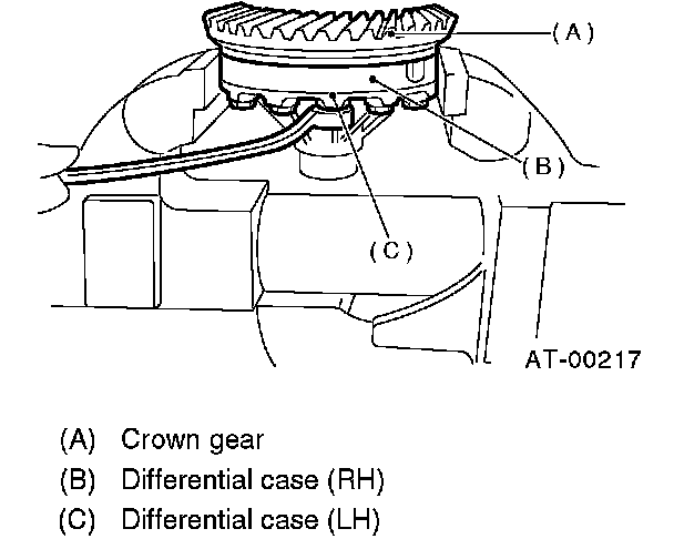 1. Install the differential assembly to the case, paying special attention not to damage the inside of the case (particularly, the differential side retainer contact surface).