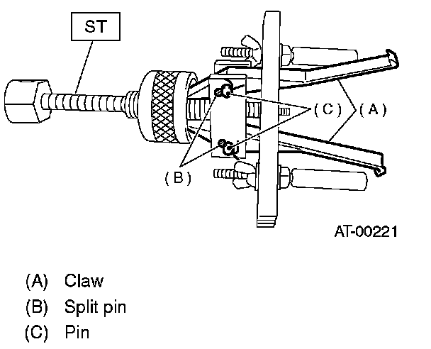 1. Using a press and ST, remove the taper roller bearing.