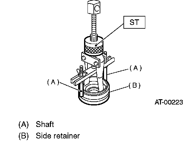 6. Hold the shaft of ST to avoid removing from side retainer, and then remove the bearing outer race.