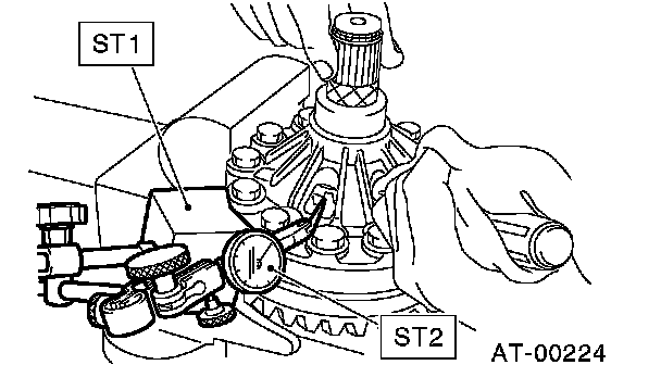 5. Rotate the drive pinion several times with ST1 and ST2.