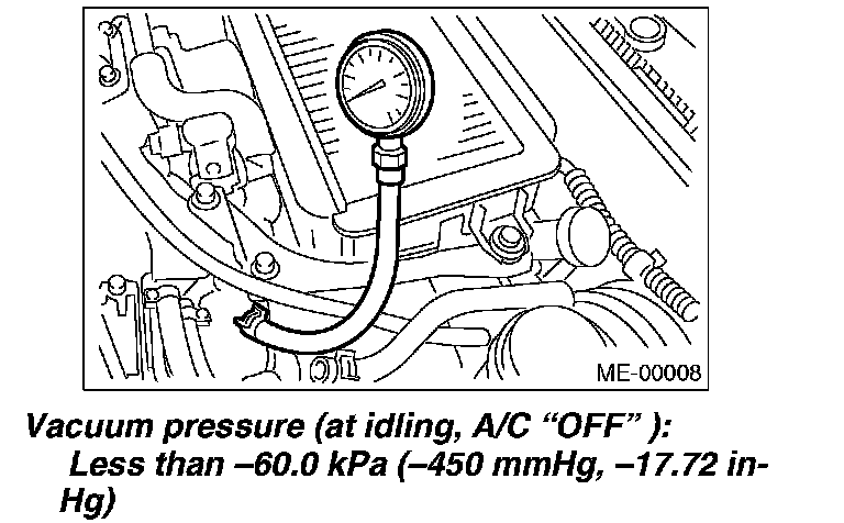 Vacuum pressure (at idling, A/C "OFF"): Less than -60.0 kPa (-450 mmHg, - 17.72 inHg)