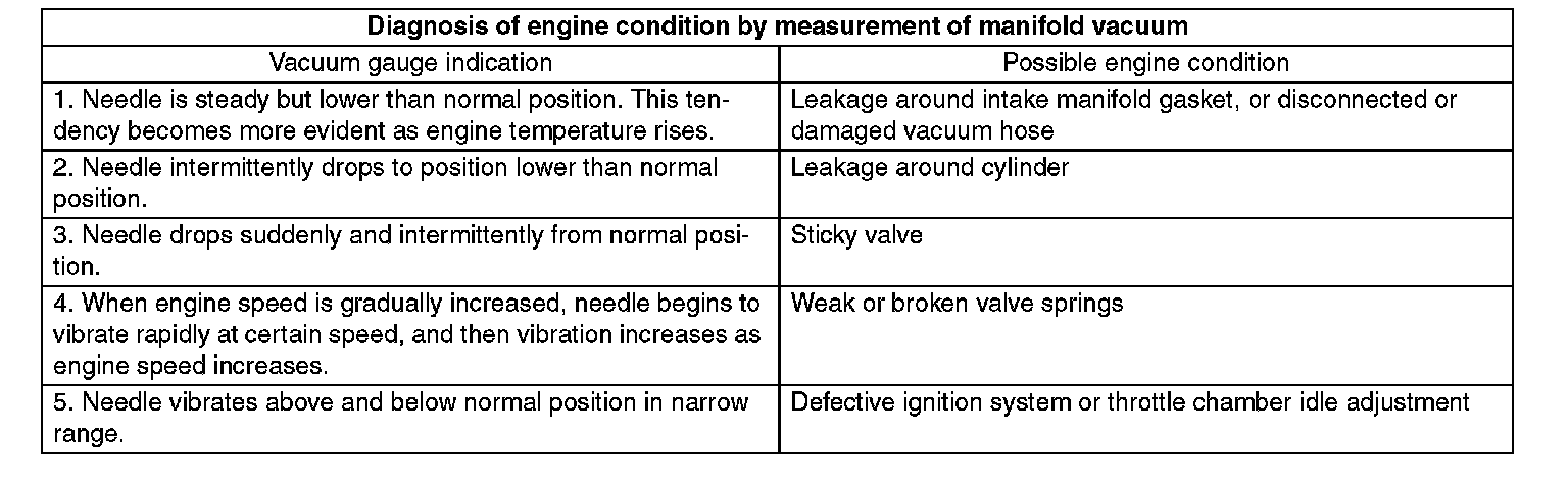 By observing the gauge needle movement, internal condition of the engine can be diagnosed as described below.