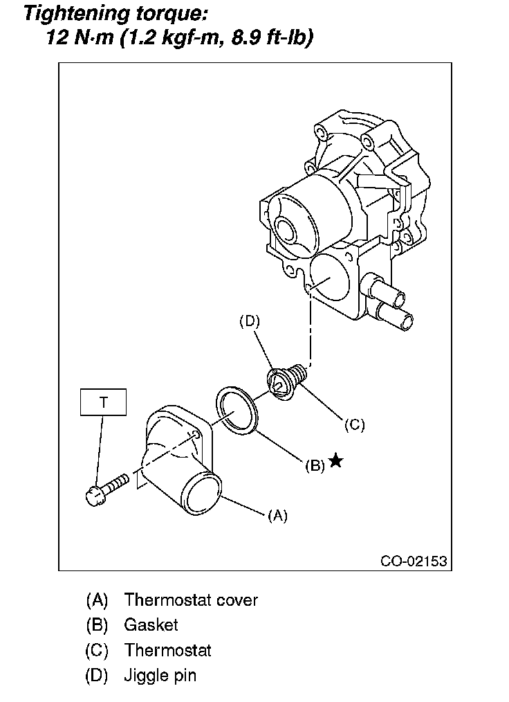 ^ When reinstalling the thermostat, use a new gasket.
