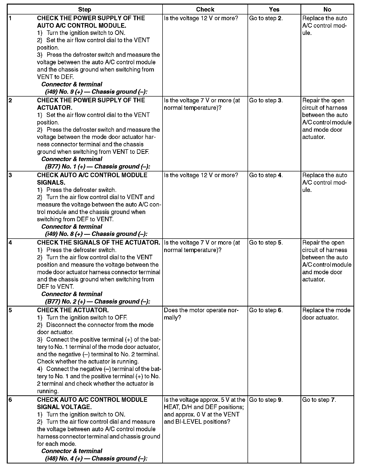 Diagnostic Procedure for ActuatorsINTAKE DOOR ACTUATOR