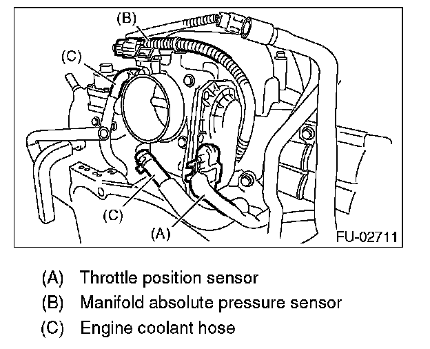 3. Disconnect the connectors from throttle position sensor and manifold absolute pressure sensor.