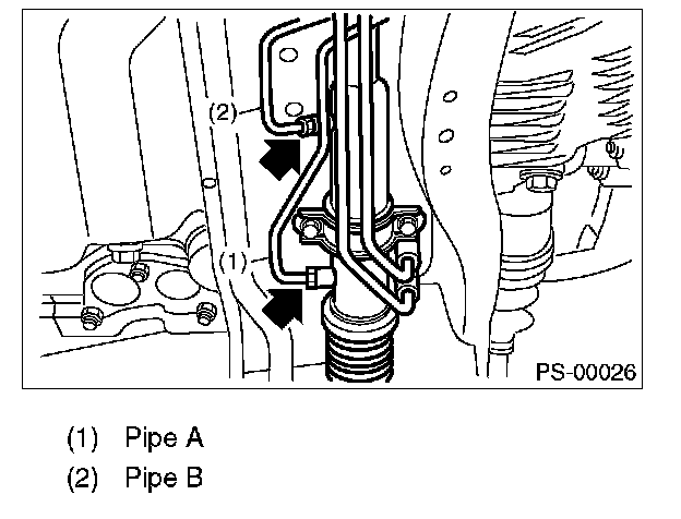 6. Connect the pipes A and B to four pipe joints of gearbox assembly. Connect the upper pipe B first, and lower pipe A second.